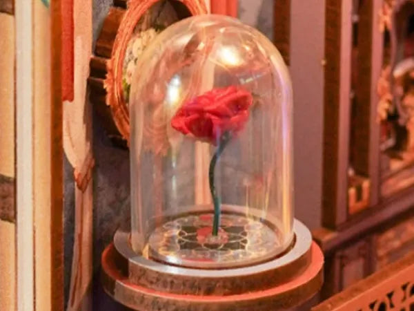 Le Book Nook – Beast And Beauty est un kit DIY élégant qui mêle mécanisme rotatif, double éclairage et détails raffinés. Transformez le héros du conte de la bête en prince d’un simple geste, et laissez la magie opérer. La scène s’habille d’un décor gothique : vitraux, ronces et roses sculptées avec soin. Deux modes d’éclairage – chaud et froid – permettent d’adapter l’ambiance à votre humeur. Livré avec un manuel illustré et une boîte cadeau, c’est un objet parfait à offrir ou à collectionner.
