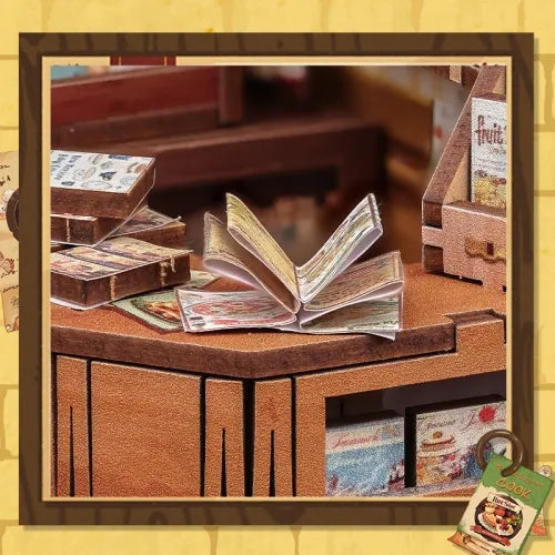 Le Cooking Bookstore Booknook est une librairie miniature fabriquée à la main avec amour, destinée aux gourmets et aux collectionneurs de mini-mondes magiques. Inspirée d'une librairie culinaire chaleureuse, elle combine des étagères élégantes, des présentoirs détaillés et un éclairage d'ambiance. Conçue avec le plus grand soin et facile à assembler, elle s'intègre parfaitement à votre bibliothèque, comme un passage secret vers un monde raffiné. Cette pièce allie l'art culinaire et l'esthétique, apportant chaleur et inspiration à votre intérieur.