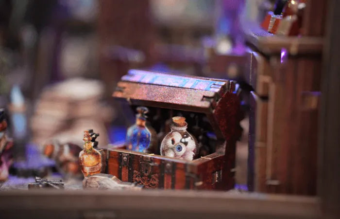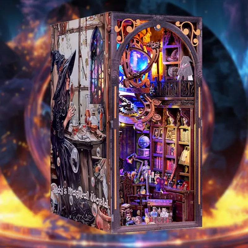 Book Nook – Judy's Magical World est un kit DIY regorgeant de détails féériques qui créent une atmosphère mystérieuse et magique. Des grimoires dessinés à la main aux fioles lumineuses en passant par un éclairage d'ambiance, ce modèle allie fantaisie et précision artisanale. Idéal comme cadeau, objet de collection ou élément décoratif dans une bibliothèque.