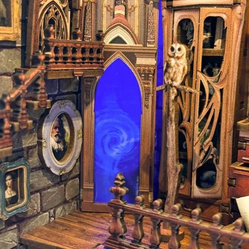 Bienvenue dans l’univers magique du Book Nook – Magic Studio ! Cette fascinante maison miniature vous transporte dans un atelier mystérieux rempli de mécanismes cachés et de trésors scintillants. Le trésor doré rotatif et l’éclairage LED enchanteur créent un jeu d’ombre et de lumière qui transforme votre étagère en une scène magique.