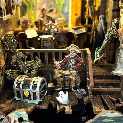 Book Nook - New World Ghost Ship, un kit créatif pour construire un diorama miniature. Parfait pour décorer une bibliothèque ou comme cadeau original pour un amoureux des livres. Par Nookette.