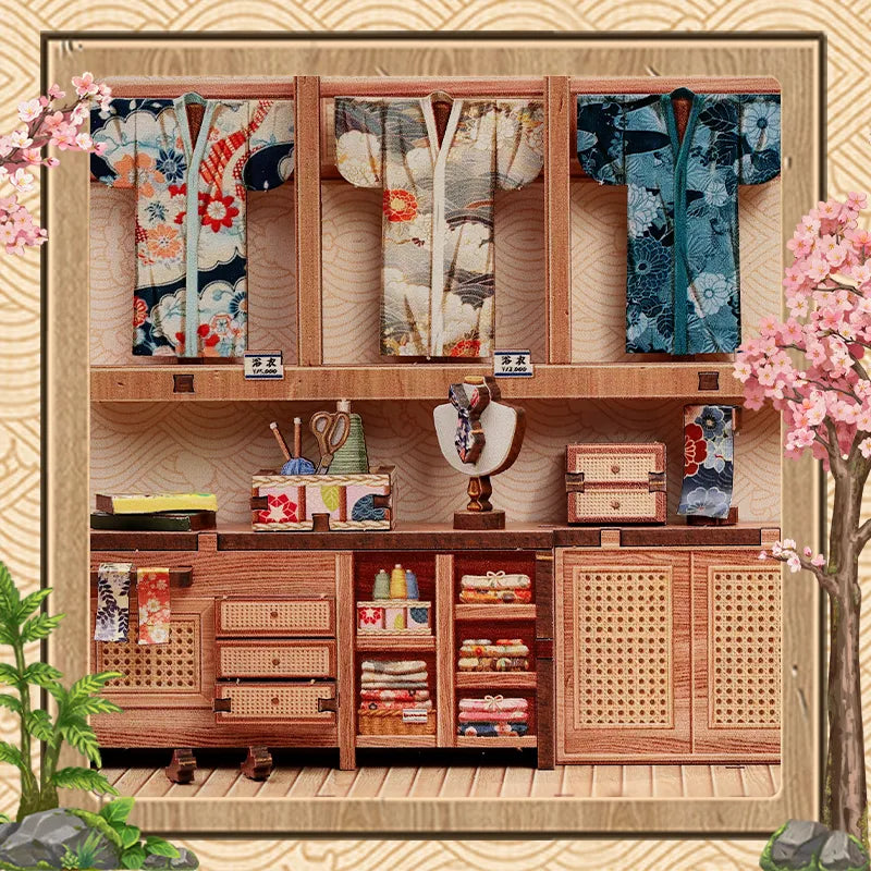 - Élégance sereine: Des kimonos élégants suspendus dans les coins appropriés capturent la lumière et ajoutent une touche de grâce tranquille à l'ensemble.