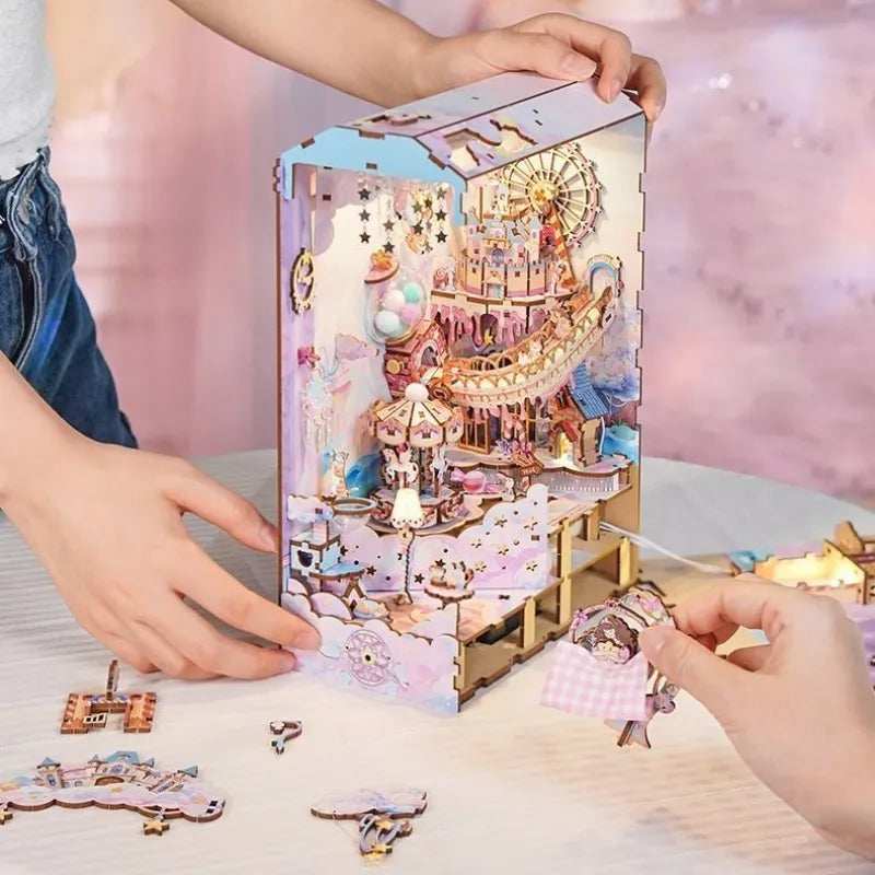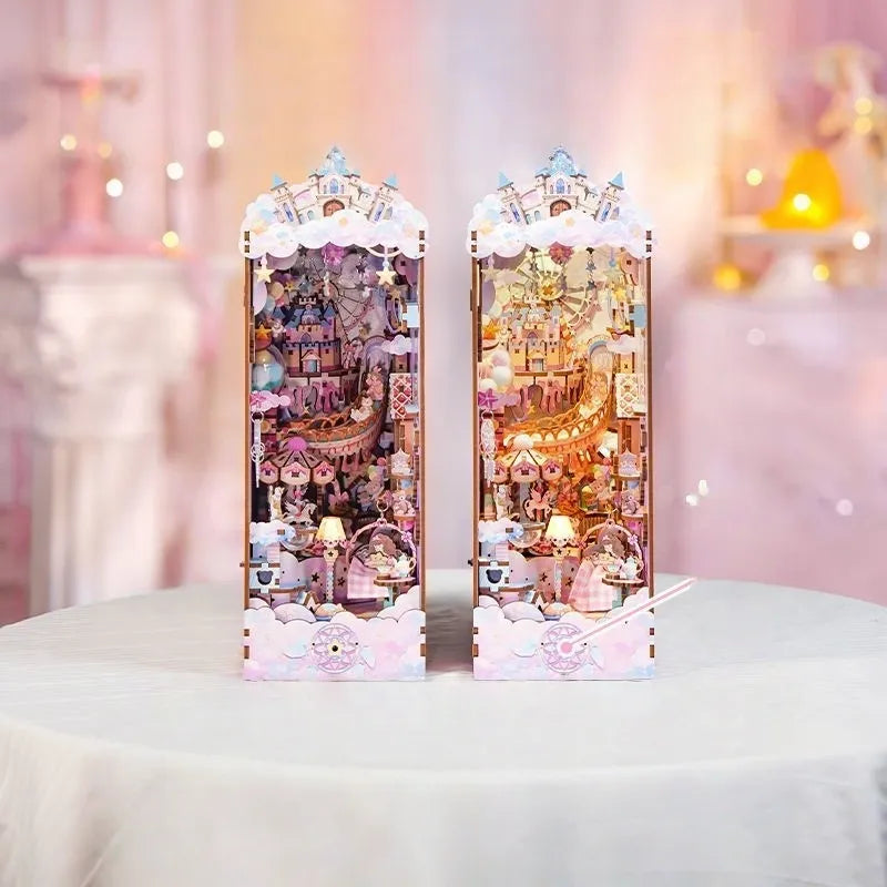 - Éclairage par simple toucher : D'une légère touche, réveillez les lumières oniriques à l'intérieur du Book Nook, comme si vous étiez plongé dans le doux conte de fées au chevet de la jeune fille, illuminant la romance dans votre cœur.