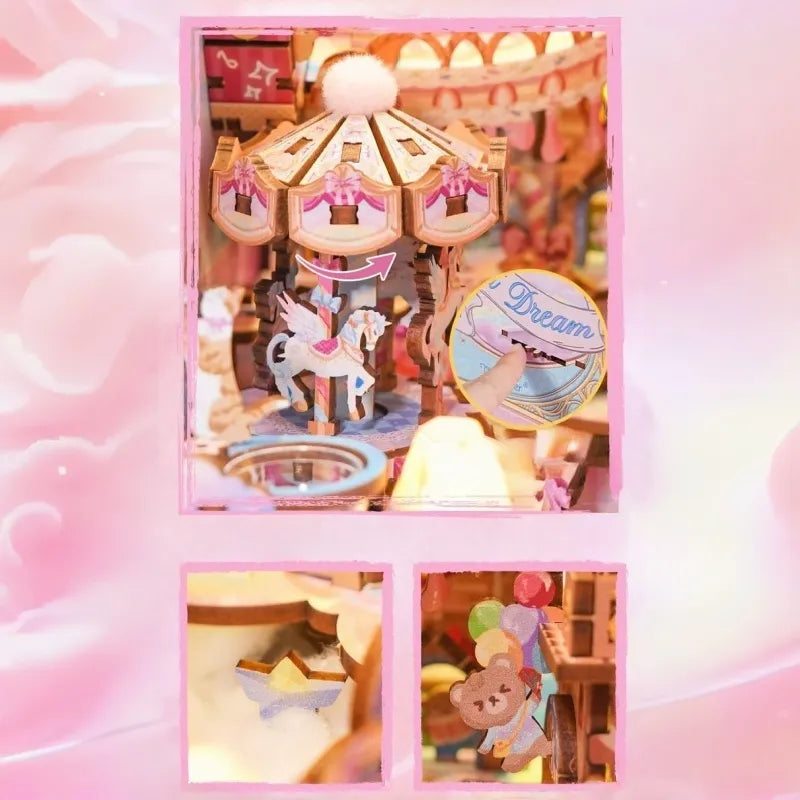 - Engrenages tournants, rythmes des rêves : Un mécanisme d'engrenage délicat permet, d'une légère rotation, de faire tourner le lit carrousel, injectant une dynamique et une vitalité vives dans toute la scène.