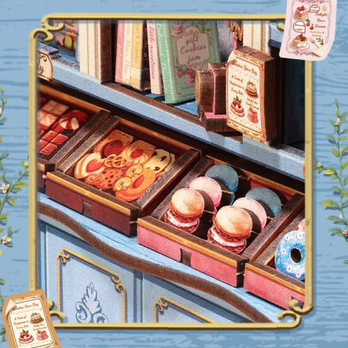 Sweet Marie est un Book Nook à monter soi-même, évoquant une charmante pâtisserie française. Chaque détail – des rideaux délicats aux desserts miniatures – transporte dans un univers poétique et chaleureux. Un objet décoratif unique, parfait pour offrir ou embellir votre bibliothèque.