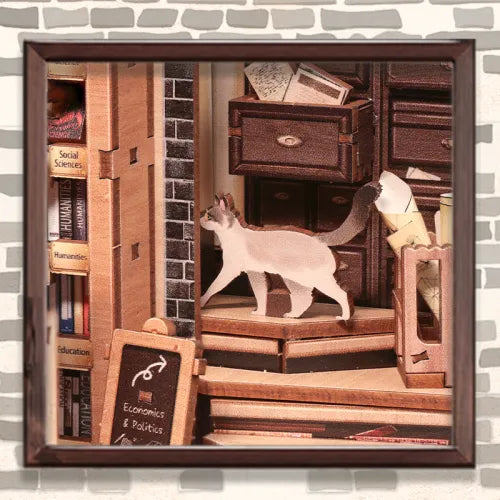Book Nook – The Scholar's Bookstore est un diorama de bibliothèque riche en détails, inspiré par la magie tranquille des anciennes librairies. Avec ses étagères hautes, son banc en bois, sa fenêtre baignée de lumière et son éclairage LED chaleureux, il capture la magie des heures de lecture tranquilles. Grâce à sa construction rabattable, sa protection contre la poussière et son contrôle de la température, ce Book Nook apporte non seulement une touche esthétique, mais aussi fonctionnelle à votre étagère – parfait pour les amateurs de livres et les rêveurs.
