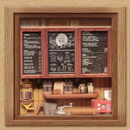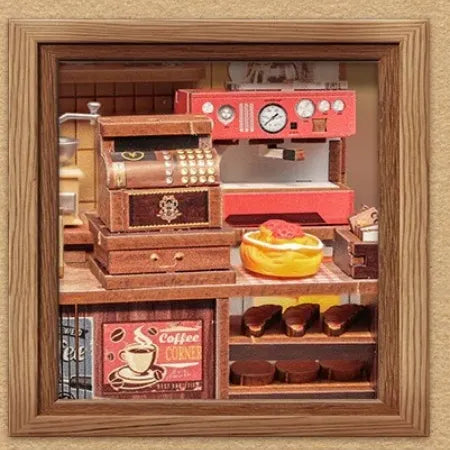 Corner Coffee Shop est une maison miniature qui capture toute la chaleur d’un petit café de rue. Avec sa vitrine ouverte, ses meubles rétro et son menu écrit à la main, chaque détail évoque une scène urbaine conviviale. Sa structure en bois finement découpée et son éclairage LED tamisé apportent profondeur et réalisme à l’ensemble. Ce kit DIY à assembler est parfait pour les amateurs de décoration poétique, de cafés parisiens… ou de moments de calme. Une maquette de café miniature qui sublime votre étagère avec charme et douceur.