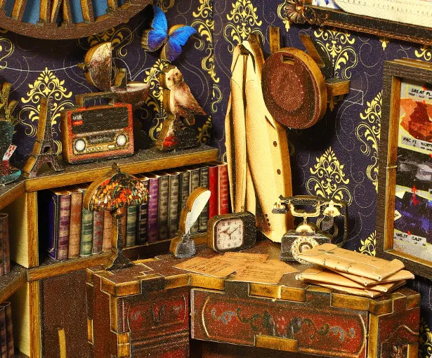 Book Nook - Detective Agency, un kit créatif pour construire un diorama miniature. Parfait pour décorer une bibliothèque ou comme cadeau original pour un amoureux des livres. Par Nookette.