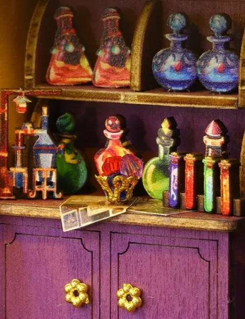 La Magic Energy Station est une maison miniature à construire, entièrement dédiée à l’univers magique. Elle allie plaisir du bricolage et immersion totale grâce à ses portes ouvrantes, sa lumière LED d’ambiance et sa devanture de boutique fonctionnelle. Les accessoires magiques intégrés ajoutent une touche unique à l’ensemble.