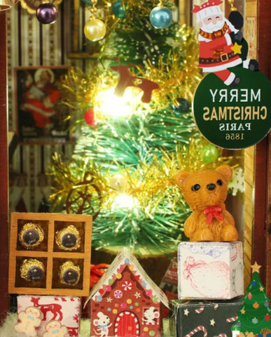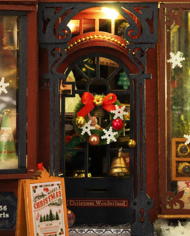 Kit de construction de maison miniature - Christmas Wonderland : créez votre propre boutique de cadeaux de Noël pleine de charme ! Avec ses détails conçus avec amour, tels qu'une vitrine remplie de cadeaux de Noël, un Père Noël souriant à la caisse et un bonhomme de neige devant la porte, cette maison miniature sera le clou de votre décoration de Noël. La porte à charnières révèle les riches détails de l'intérieur et vous plonge littéralement dans l'ambiance festive. Grâce aux autocollants pré-imprimés, l'assemblage est un jeu d'enfant. La boîte à musique et la housse de protection fournies créent une atmosphère de Noël très particulière sur votre étagère.