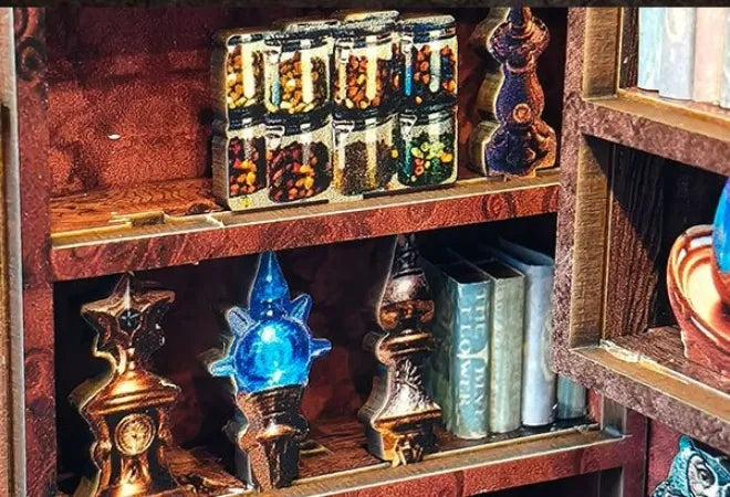 Osez franchir le seuil de la Cabane Sombre, un Book Nook où réalité et cauchemar se fondent avec art. Cette mystérieuse maison miniature, imprégnée d’un charme gothique, vous transporte dans un monde où les ombres murmurent et où chaque détail raconte une histoire.